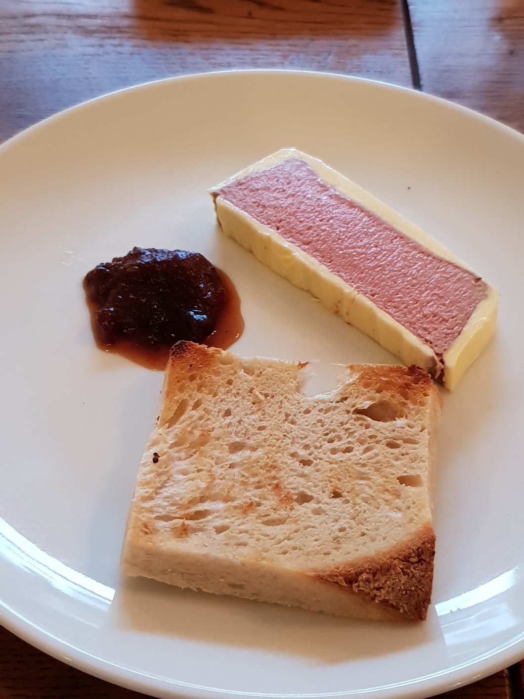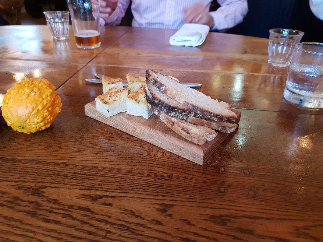 On being taken to our table, we had some nice sourdough and cheese (Hafod cheddar) topped, rosemary and sea salt focaccia. The former had a welcome chew to it and a lovely crust, whereas the latter had perhaps a tad too much of a chew (for a focaccia), but a great flavour to it. The breads came with a pleasingly tangy butter.