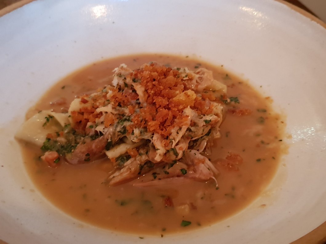The rabbit was beautifully tender, with the leg meat having been shredded and mixed in with silky pappandelle (cooked just right so it had just a touch of bite), and all of it bathed in a killer broth. Crisp lardons and breadcrumbs added a nice bit of texture.