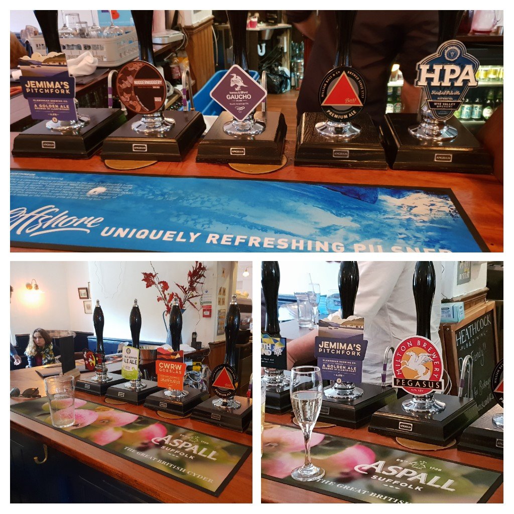 I am rather partial to Wye Valley HPA (a staple here and an easy drinking, pleasant, everyday beer) and my favourite to date of the guest ales is the Milton Pegasus (I seem to have quite conservative tastes in terms of beer – I am not keen on anything too floral). You can try before you buy in terms of a sample.