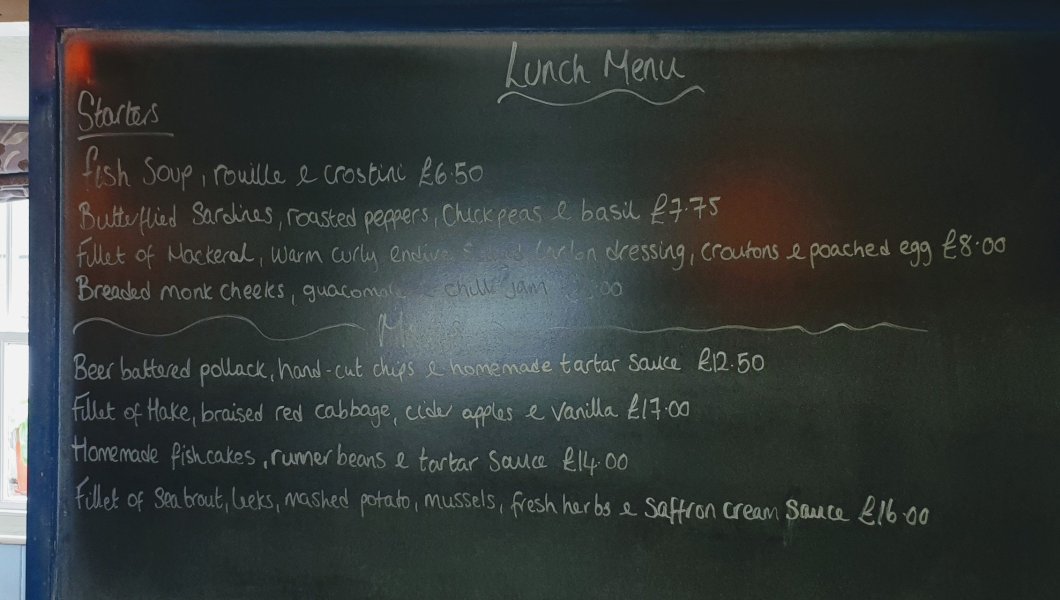 The menu as mentioned above is fish, fish and some more fish. Sensible bearing in mind the local produce on their doorstep.