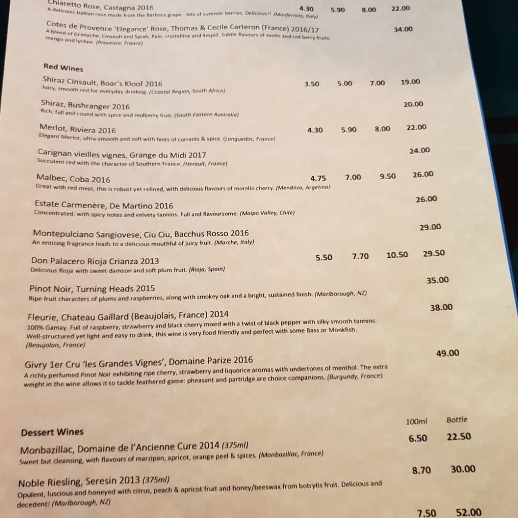 This was rather a shame as the wine list wasn’t half bad, with a nice selection of both whites