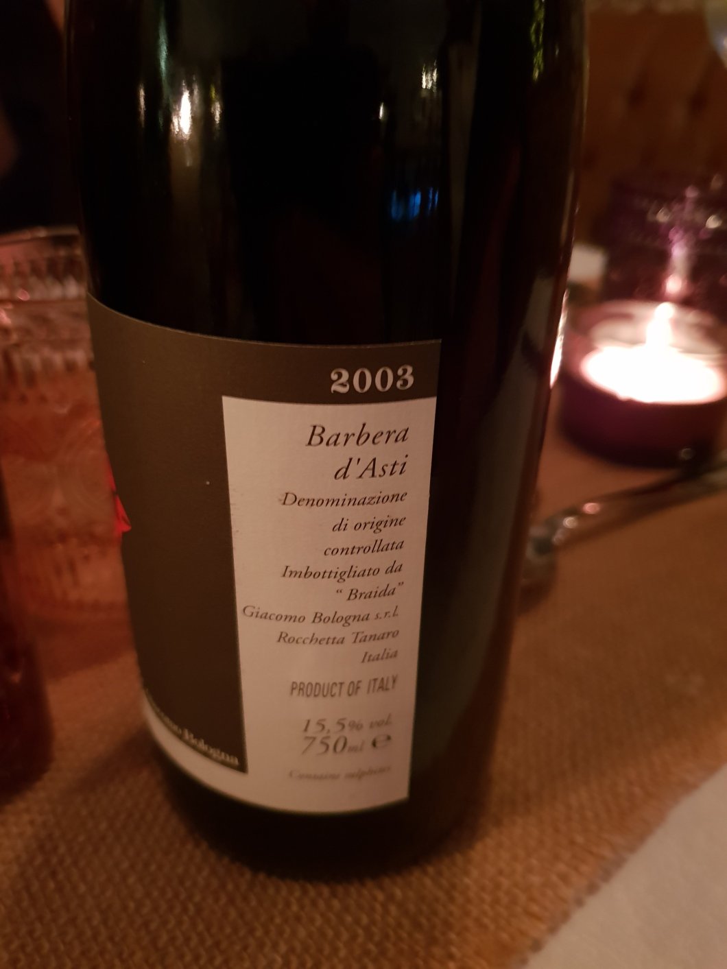 We then moved on to a Piedmont wine in the form of a Barbera d’Asti Braida “Bricco della Bigotta” 2003 from one of the master of Barbera in the form of the late great Giacomo Bologna.