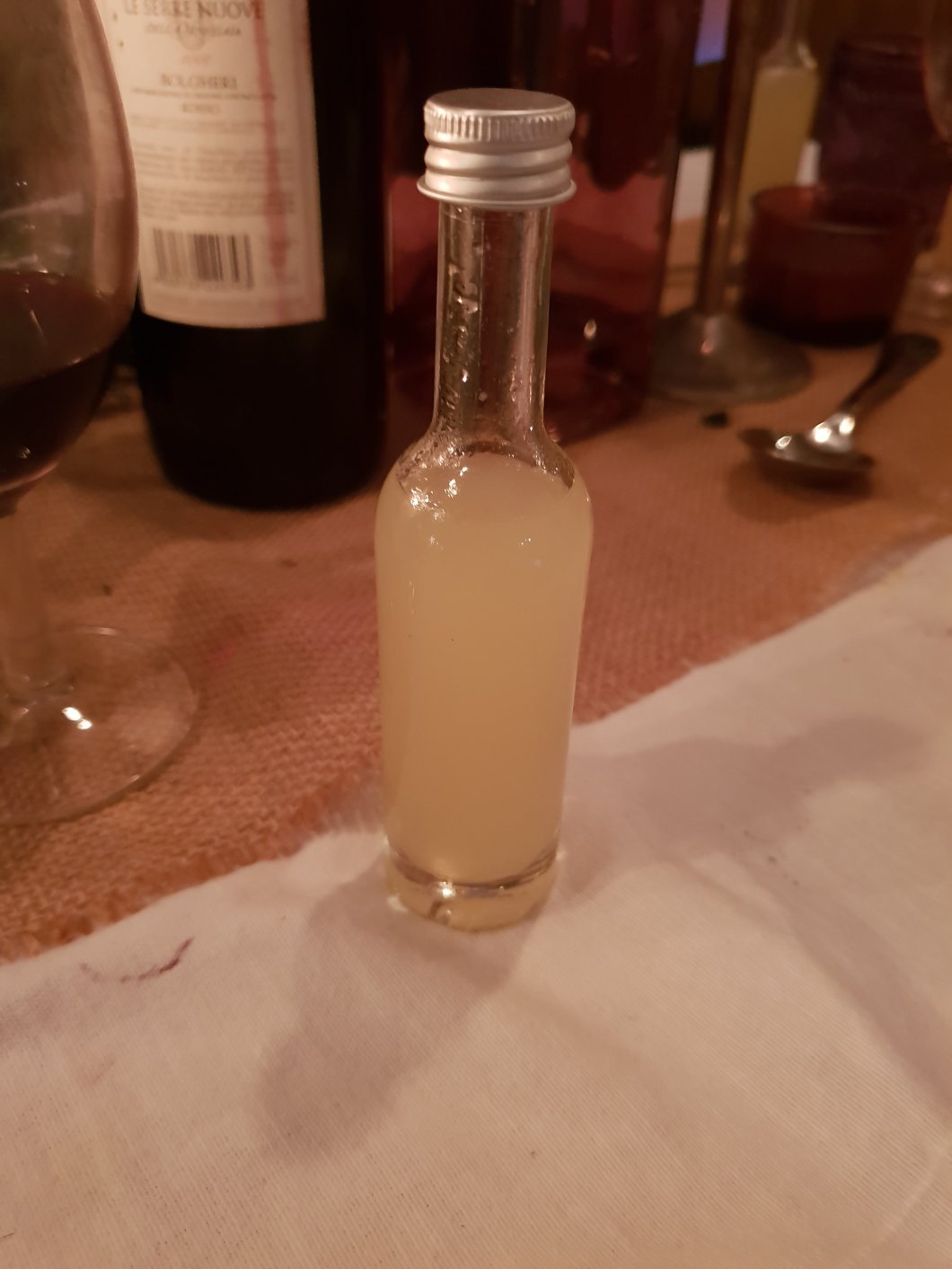 To this was added a hazelnut praline, pomegranate and fruit pavlova (laden with berries, pomegranite and fig), with a shot of limocello (from Campania) on the side