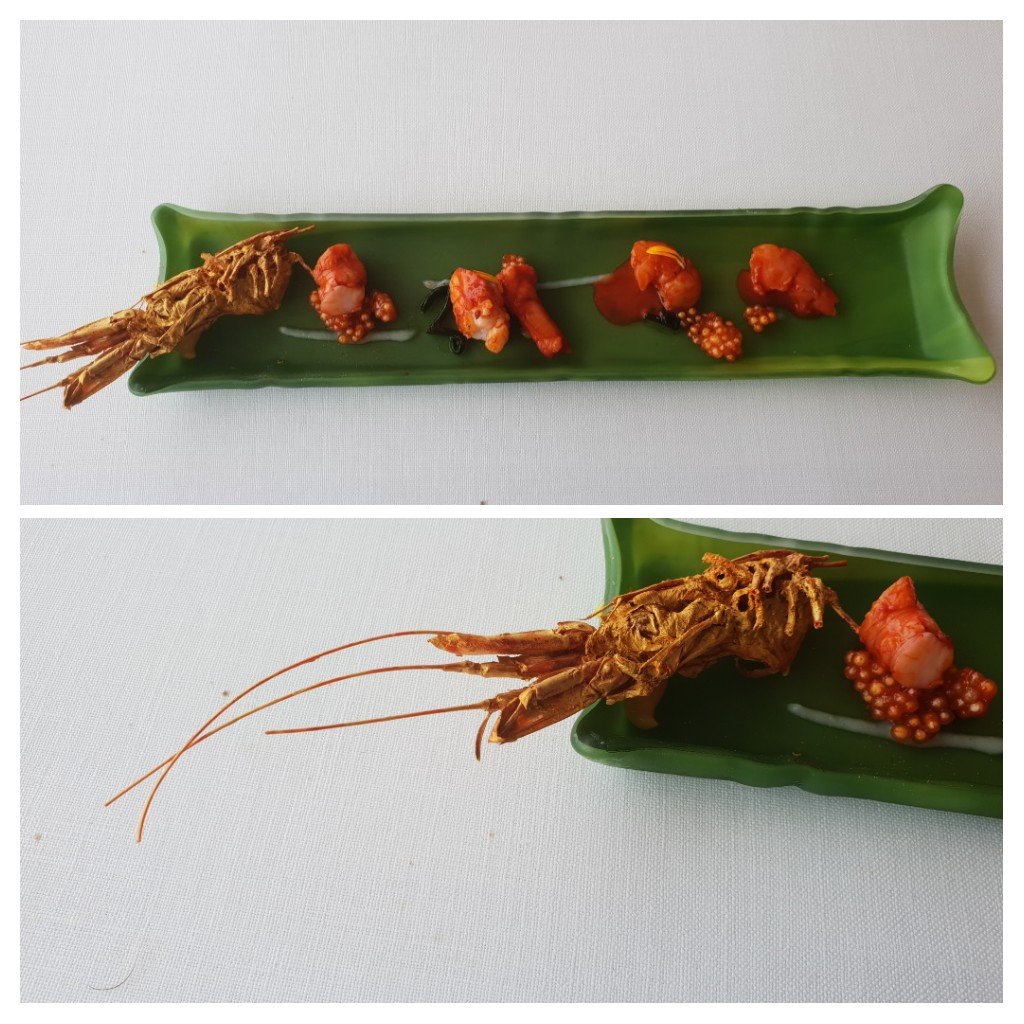 The head is always the best bit of a carabinero (you just have to suck the brains out) and here it had been dehydrated to a desiccated form which supercharged the flavour and enabled it to be eaten in its entirety. Stunningly good.