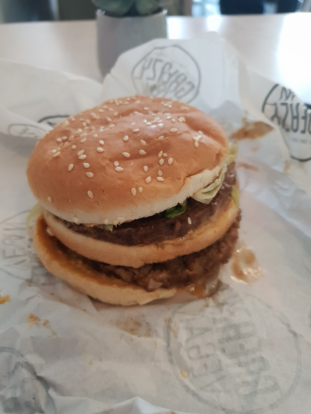 Perhaps the biggest surprise, burger wise, was the all vegan “Big Moc” at the inventive mock meat peddlers, the Greasy Vegan.