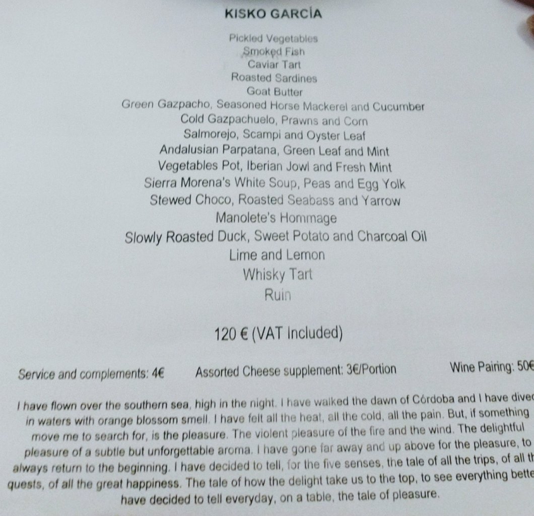 Kisko Garcia is a genius in the kitchen and this was a truly epic meal. If you are anywhere near Corboba (beautiful city) go to this place.