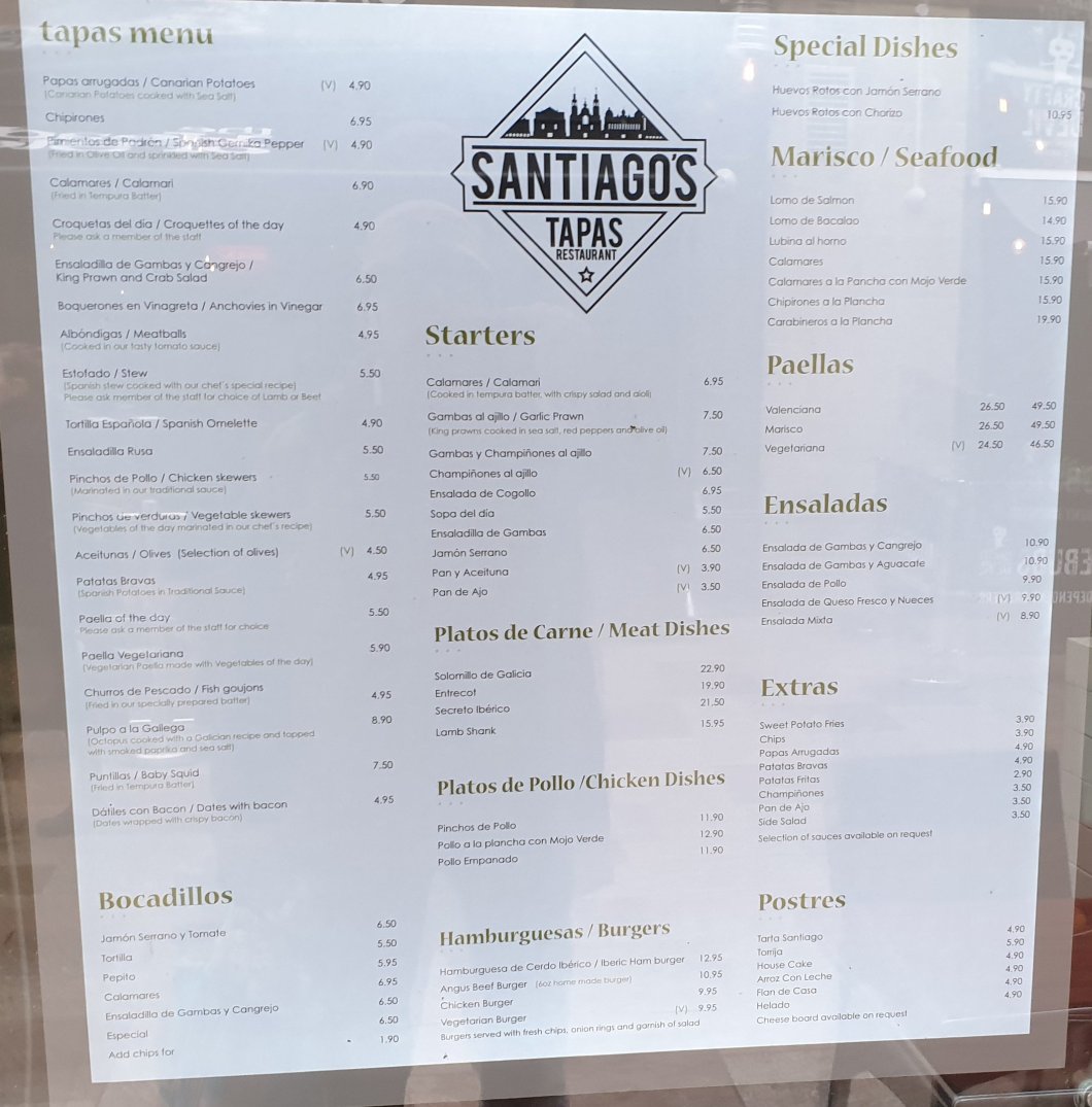 So at Santiago’s this lot costs £30 plus with two soft drinks