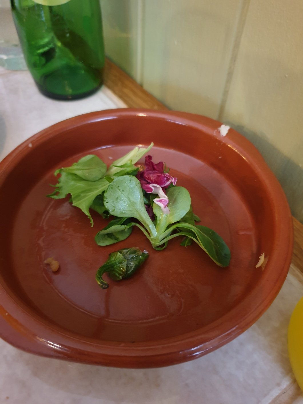 No oil was provided on the table or bread to dip in it – standard in any tapas bar in Spain (I note that bread with oil is down as a starter on the menu at a whopping £3.90) – so I couldn’t even self administer a dressing.