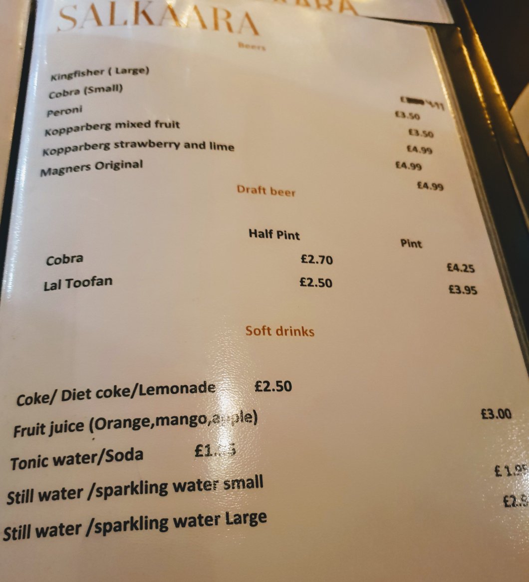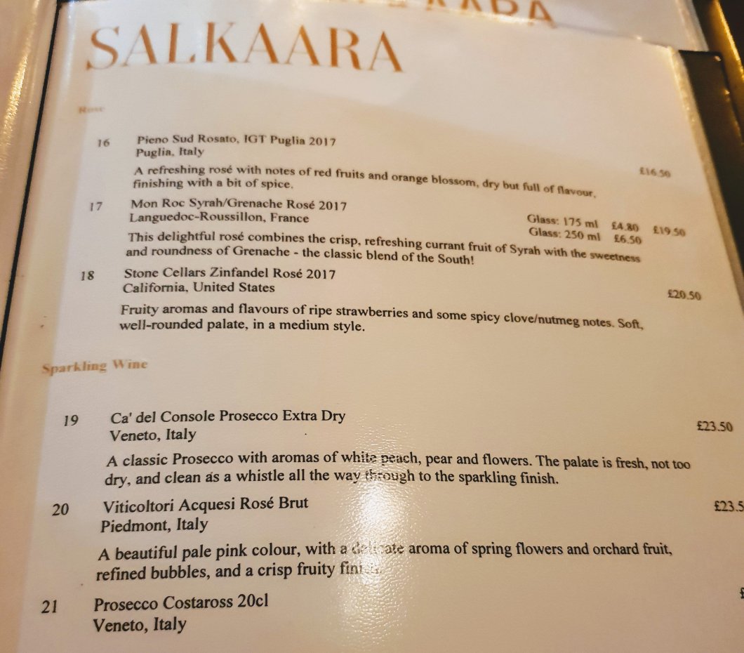 On the booze front the wine list isn’t bad at all, with a reasonable selection including an Indian white (oddly not an Indian red though)