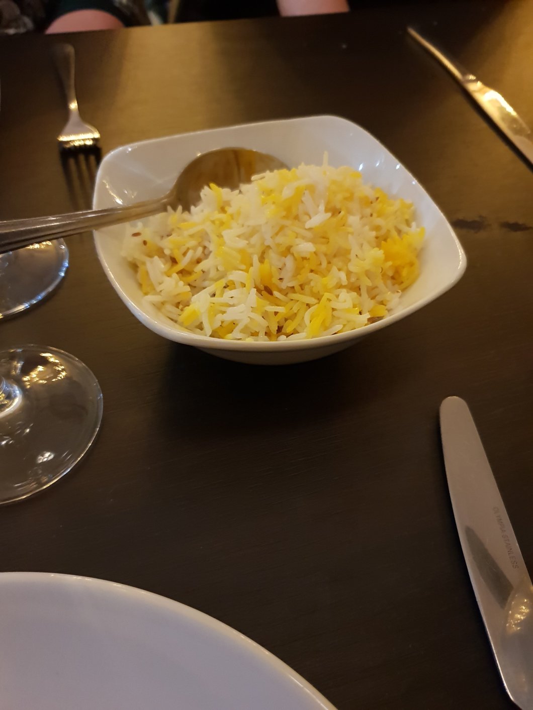 Well flavoured and perfectly cooked fluffy pilav rice (rich in spicing – £3.75)