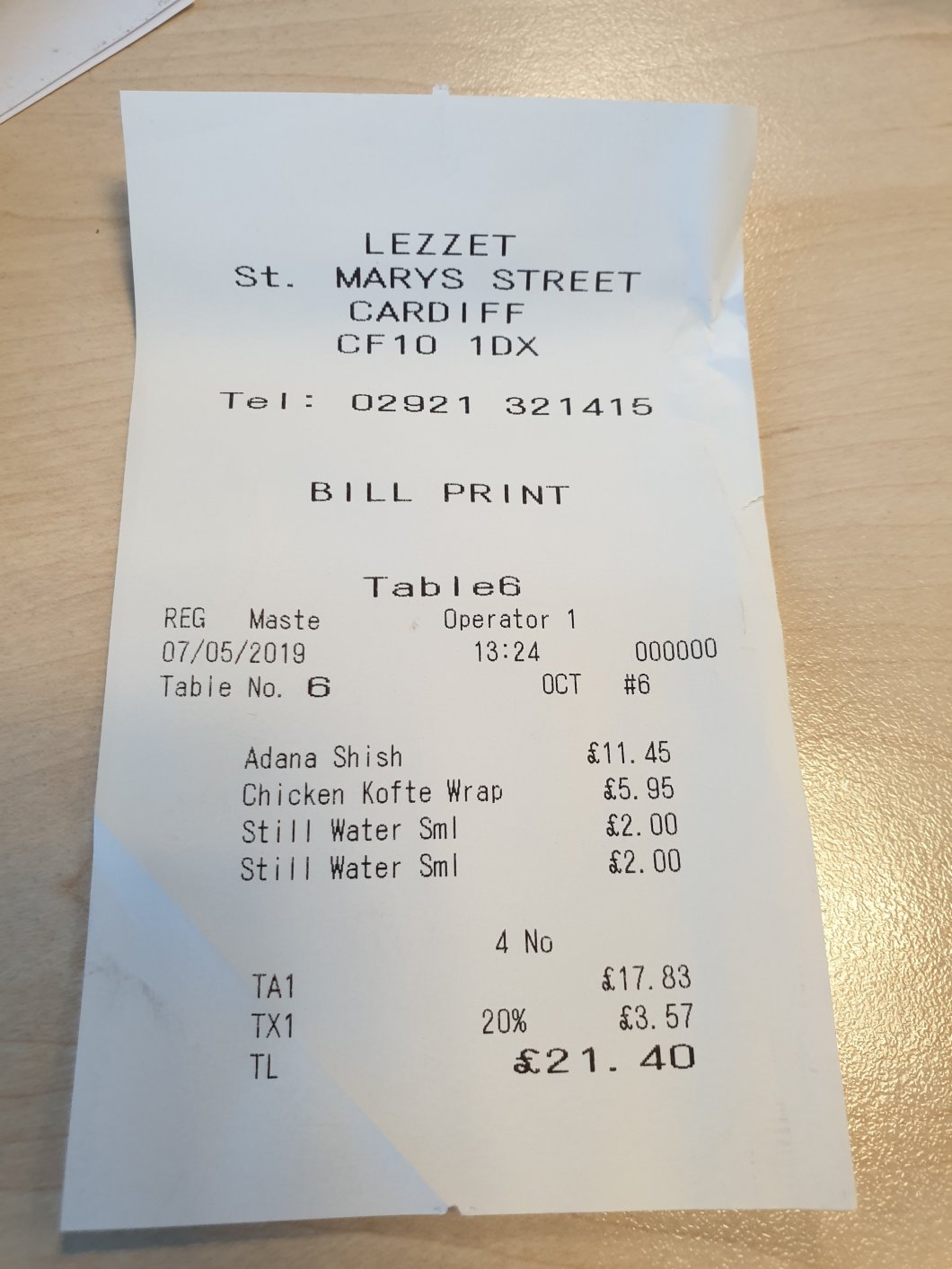 UPDATE: The management at Lezzet have emailed me and apologised for the mix up and invited me back for a meal. I appreciate the offer and the sentiment behind it. Whilst the fact that they have apologised for the mix up means I will go back as some point, I will do so unannounced and will certainly pay my way.