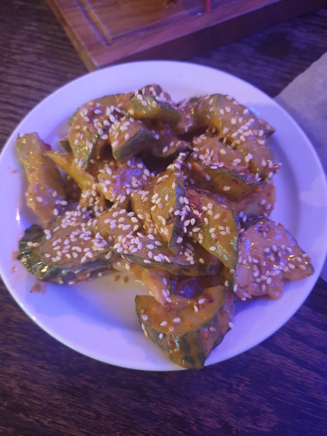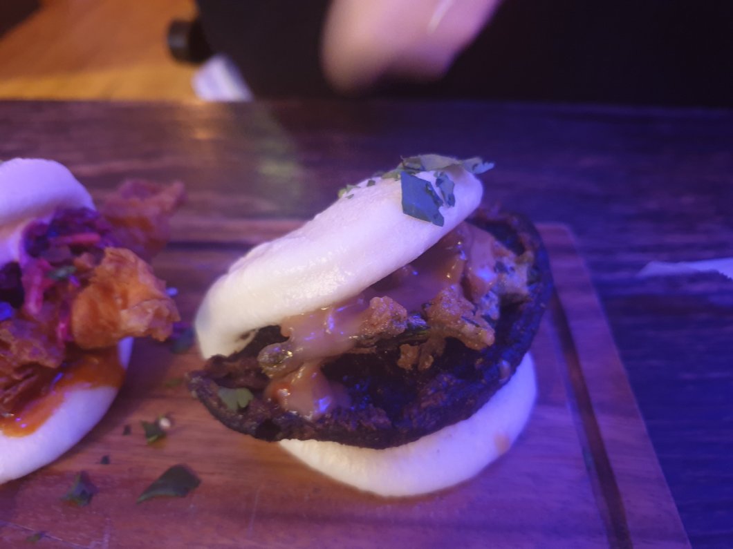 In the absence of my go to gua bao, we went for one each of the crispy beef bao, a Korean Fried Chicken (KFC) one (for me) and a garlic mushroom one (for my friend).