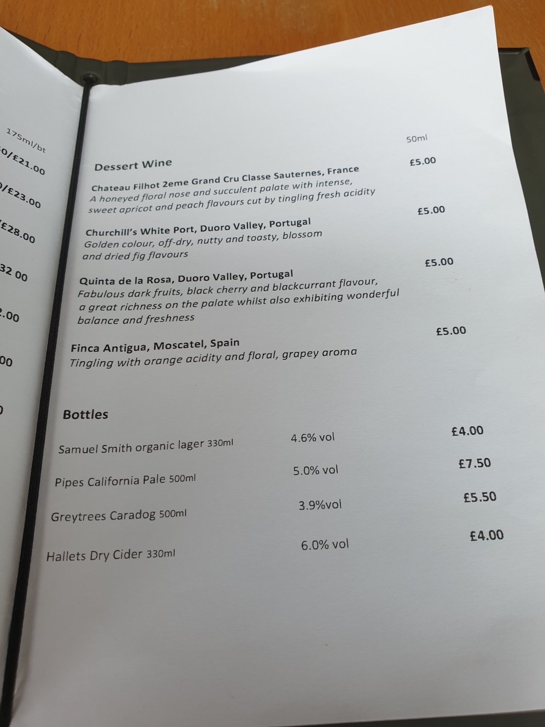 Not a bad return on that investment, if so, with the 50ml per glass price on the list here equating to £75 per bottle!