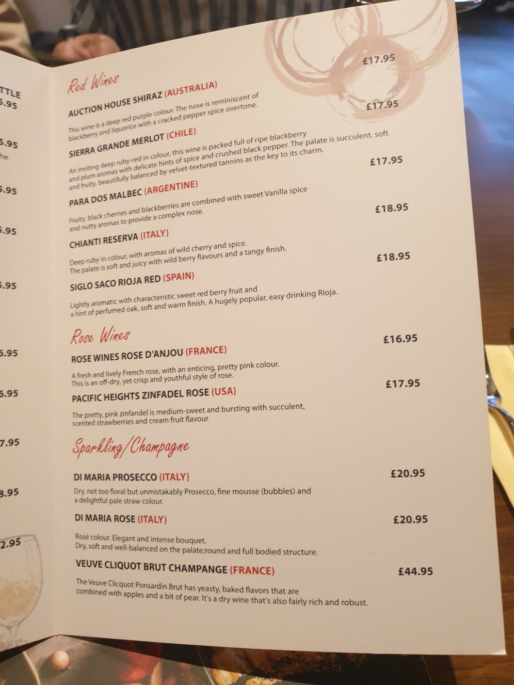 Best bets would be the off dry rosé from Anjou, the South Africa chenin Blanc in the whites and the merlot in the reds, but none particularly enthralled me so we passed and all went for beers.