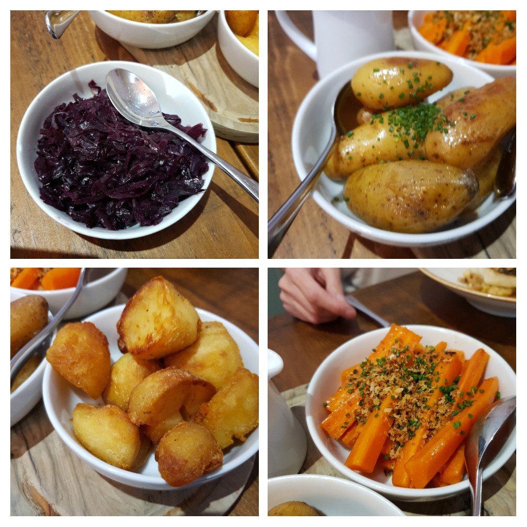 The accompaniments were equally as good, with properly crisp roasties, red cabbage, carrots and some lovely new potatoes