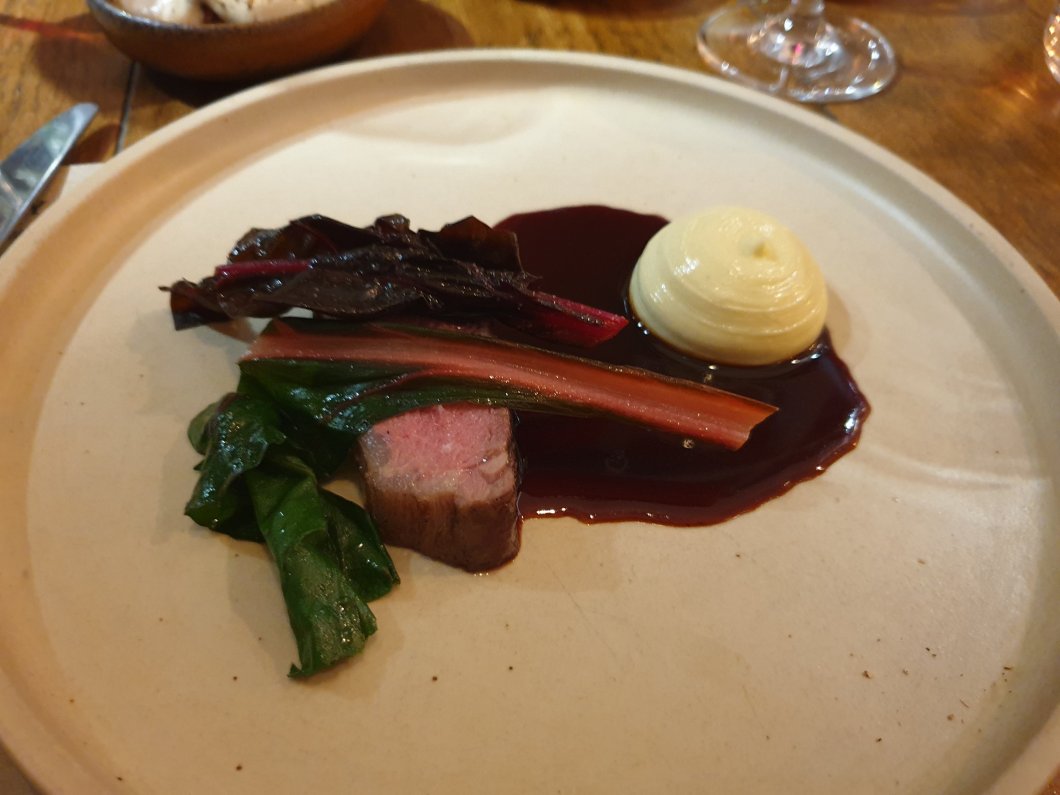 A beautifully tender and blushing pink piece of loin was packed with flavour and surrounded by a rich lamb jus and iron rich rainbow chard.