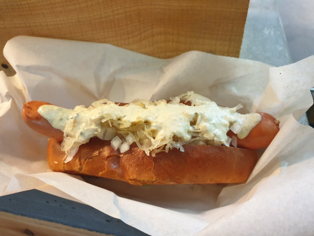 On a third trip (in their first week) I kept it very simple and old school with just the frank, raw onion and mustard in the bun