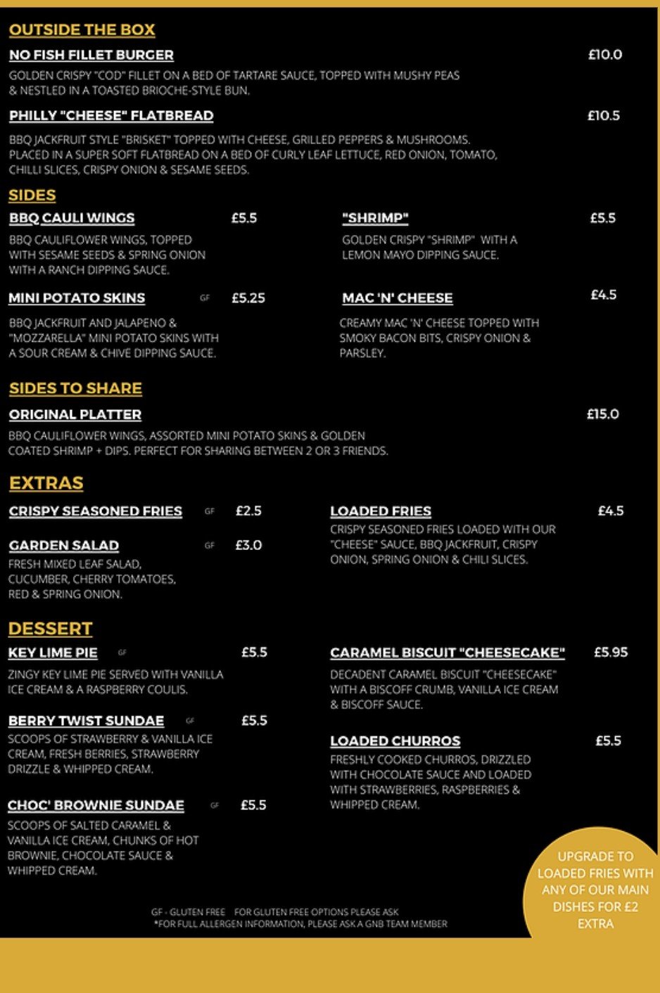 and even a fillet of “not fish” (assumed to also be soya protein based). There are also a number of interesting sounding sides.