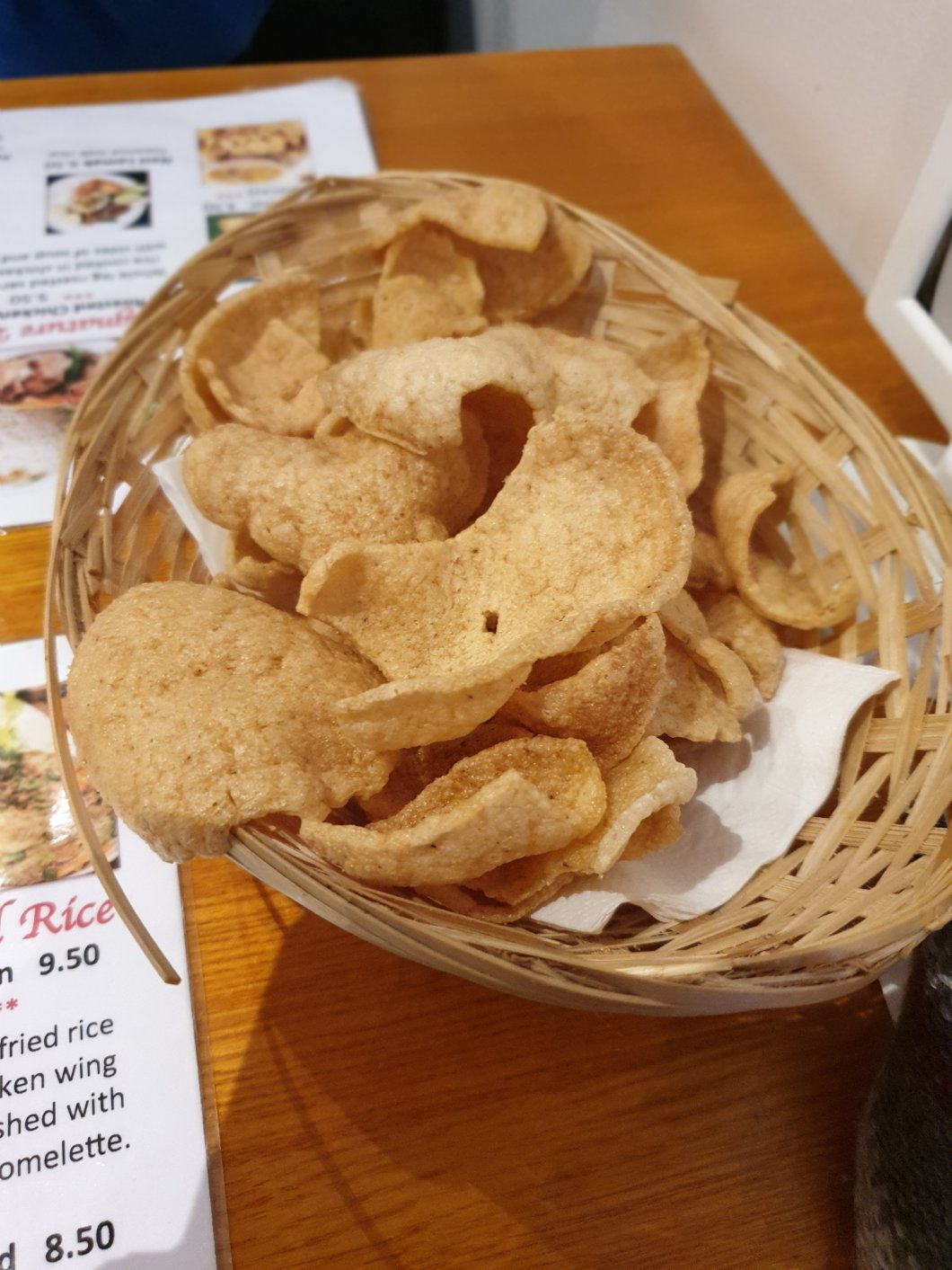 Whilst we perused the menu, a bowl of (gratis) prawn crackers was brought to the table. Nice touch that.