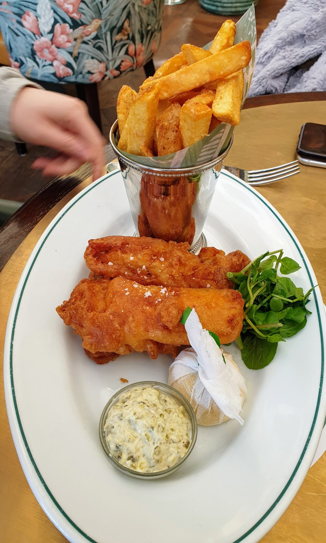 M’s cod goujon dish was a big ole portion (4 large goujons in total and lots of chips) and at first sight looked promising.