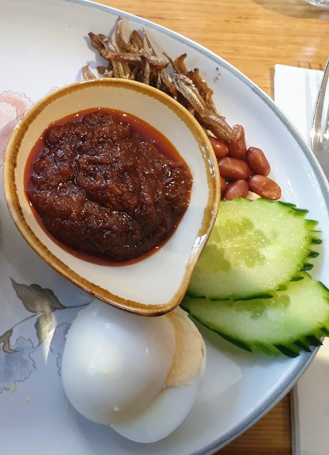 The anchovies were dried, flavour packed and very crispy. These worked well in adding a nice textural contrast to proceedings along with the peanuts, whilst some refreshing cucumber operated (along with the boiled egg) to temper the chilli in the sambal.