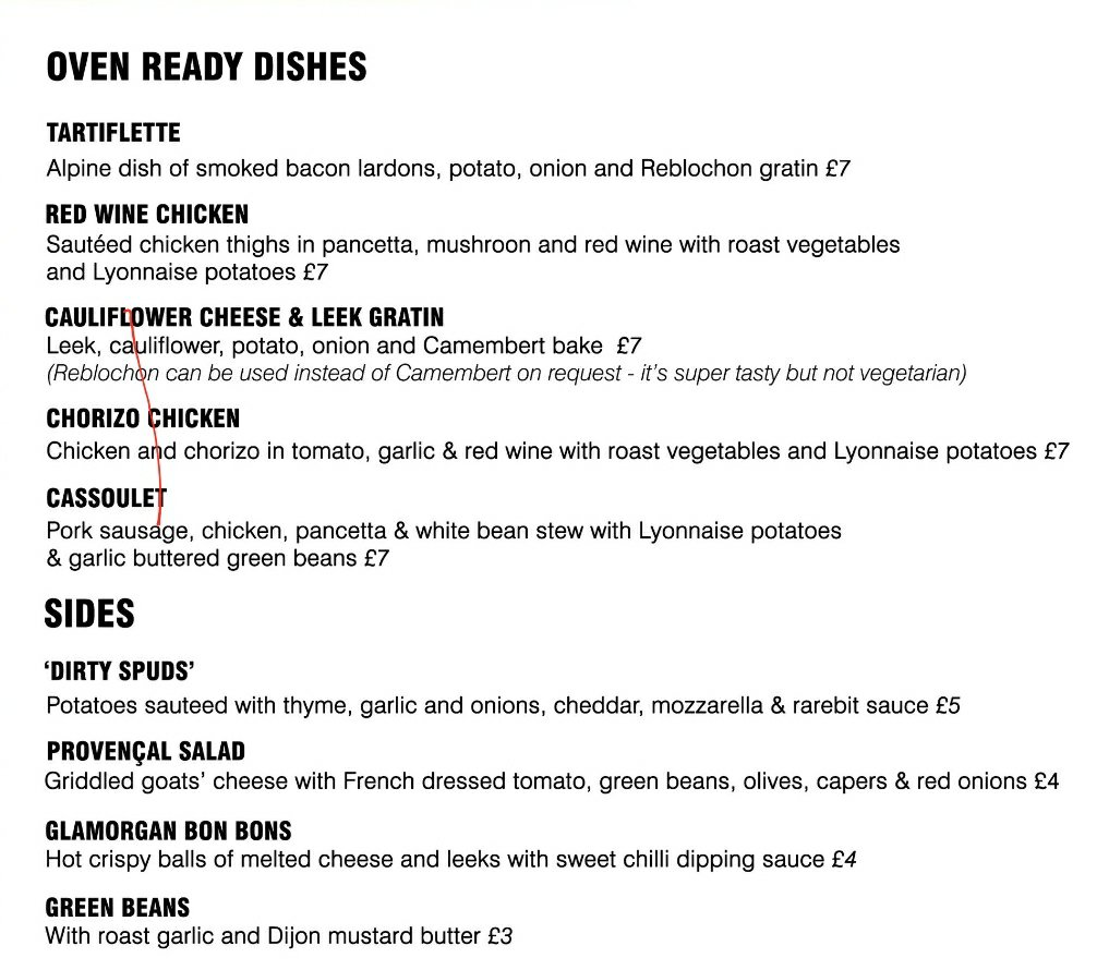 I have been a big fan of their toasted cheese sarniesfor many a year, but they have recently expanded their offering with some intriguing bistro pop upsVery nice that menu (above was for a pop up event at Mr. Brightside in Llandaff North) looked too and it was this side of their offering that tickled my fancy.