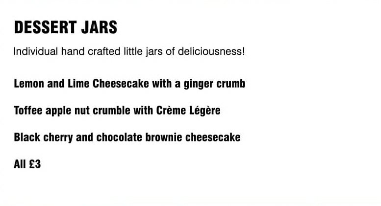 For dessert there is a choice of 3 (only two were available when we ordered due to flour, for the crumble, being hard to get hold of it seems – everyone is a bread maker these days).The lemon and lime cheescake was light and airy, with a good sharp zestiness. Very refreshing number this.