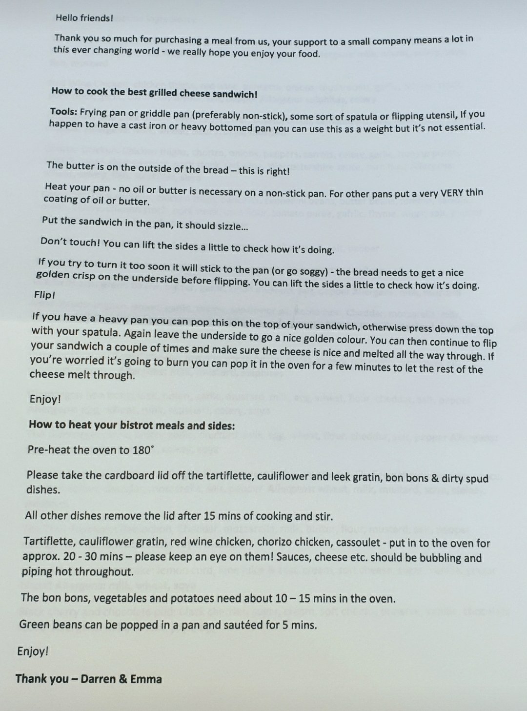 Would I order it again?  Absolutely – I think Mr. Croquewich’s Bistrot Home Delivery offers a perfect half way house between a takeaway and eating out.