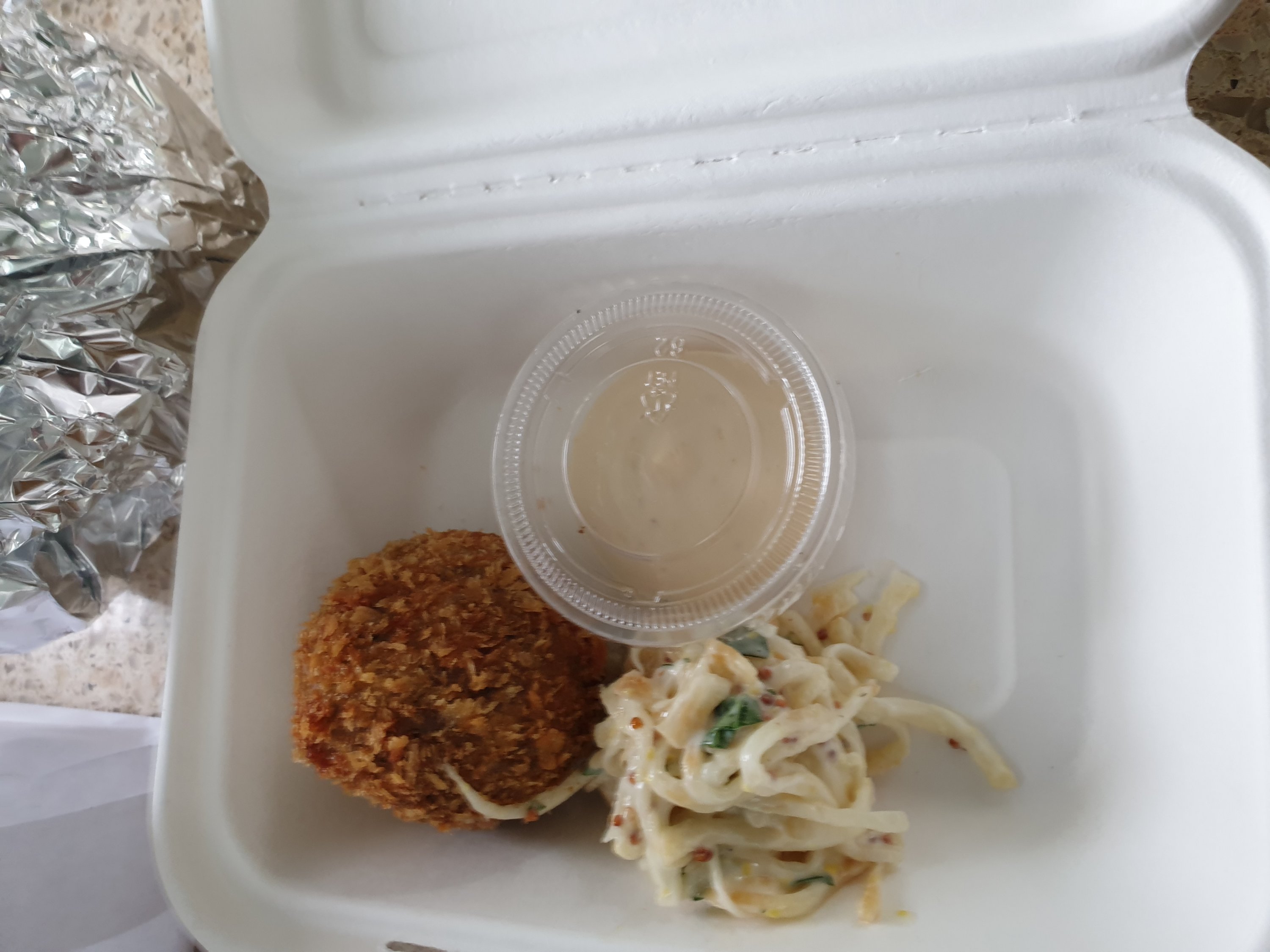 The fritter was nicely crisp (not adversely affected by the boxing up)