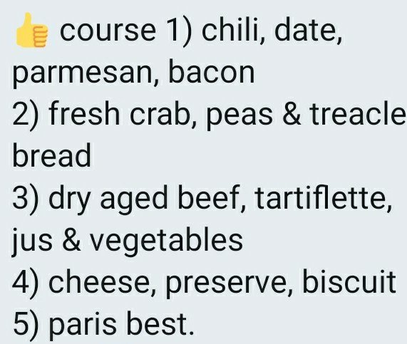 I quickly fired off a DM to Mr. Atkins expressing serious interest and after a (very quick) refining process we (well he – he knows exactly what I like food wise) got to a rather fine sounding menu which was as follows: