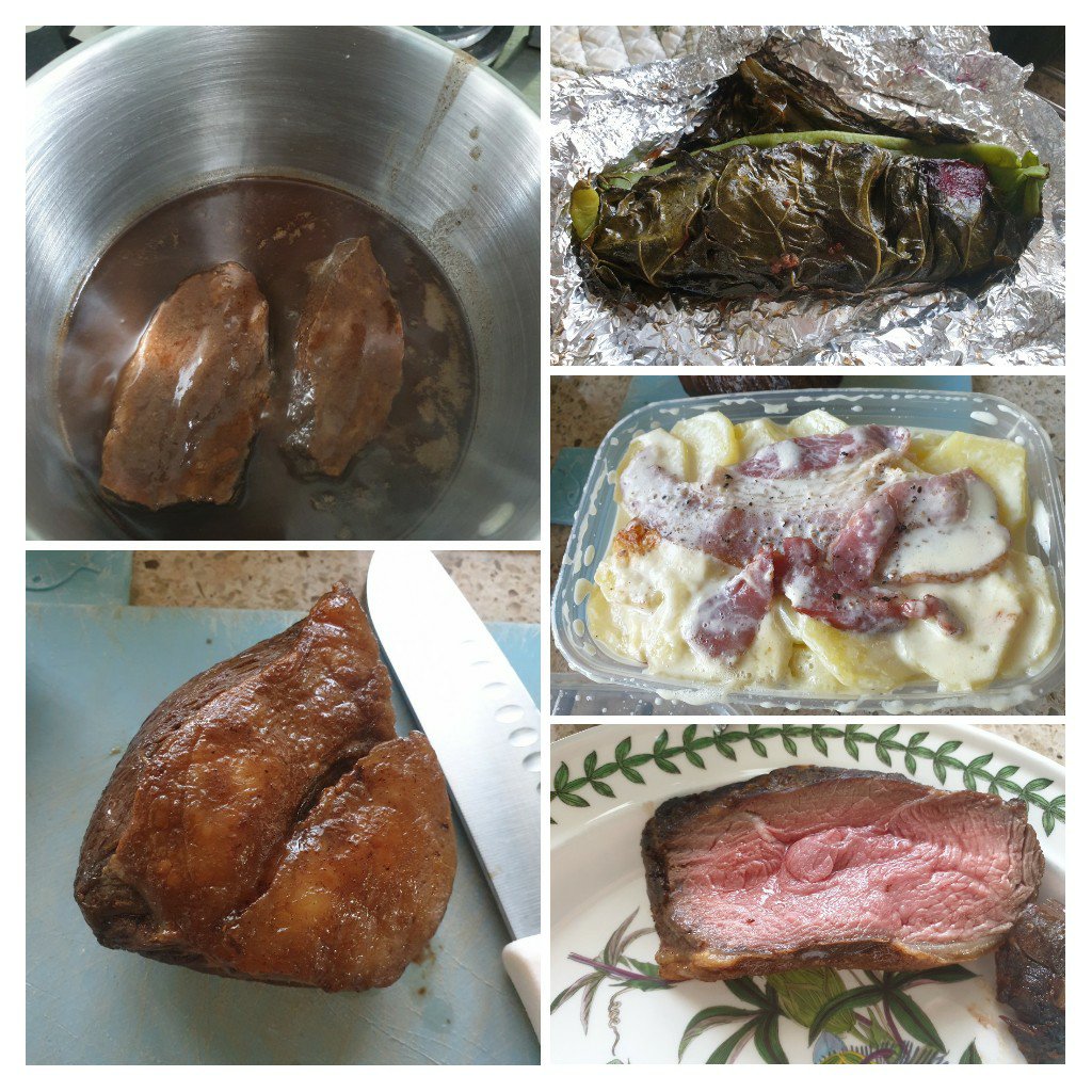 Course 3 was another doozy, with a hunk of prime dry aged beef, feather blades in a rich jus, a carmenbert dauphinoise (replacing the initially stated tartiflette as Mrs SF professed to be not keen on a too onion heavy dish) and a braised stuffed cabbage.