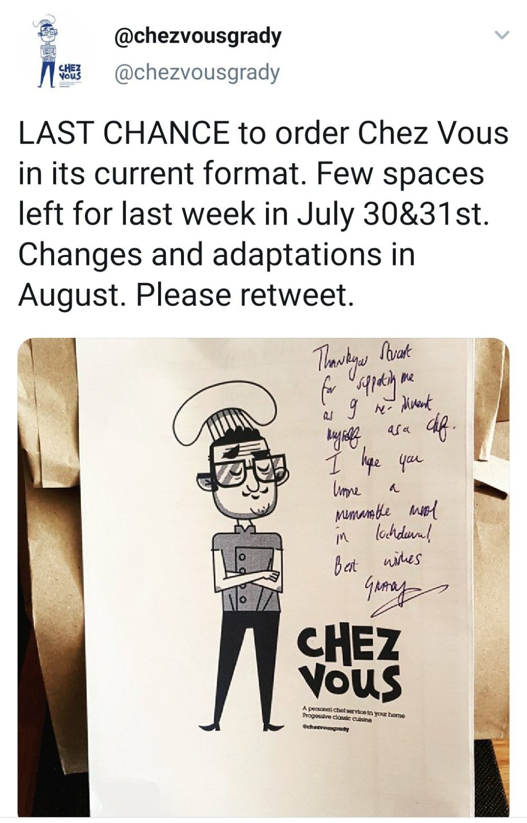 What a gorgeous menu and love the generosity. We did similar via our local favourite restaurant, and like yours the food was delivered in very carefully labelled portions, each element separate, with clear heating and assembly instructions. They even lent me restaurant plates to get the right look! Didn’t known paysan at bloc is no more, had hoped to make it after lockdown.
