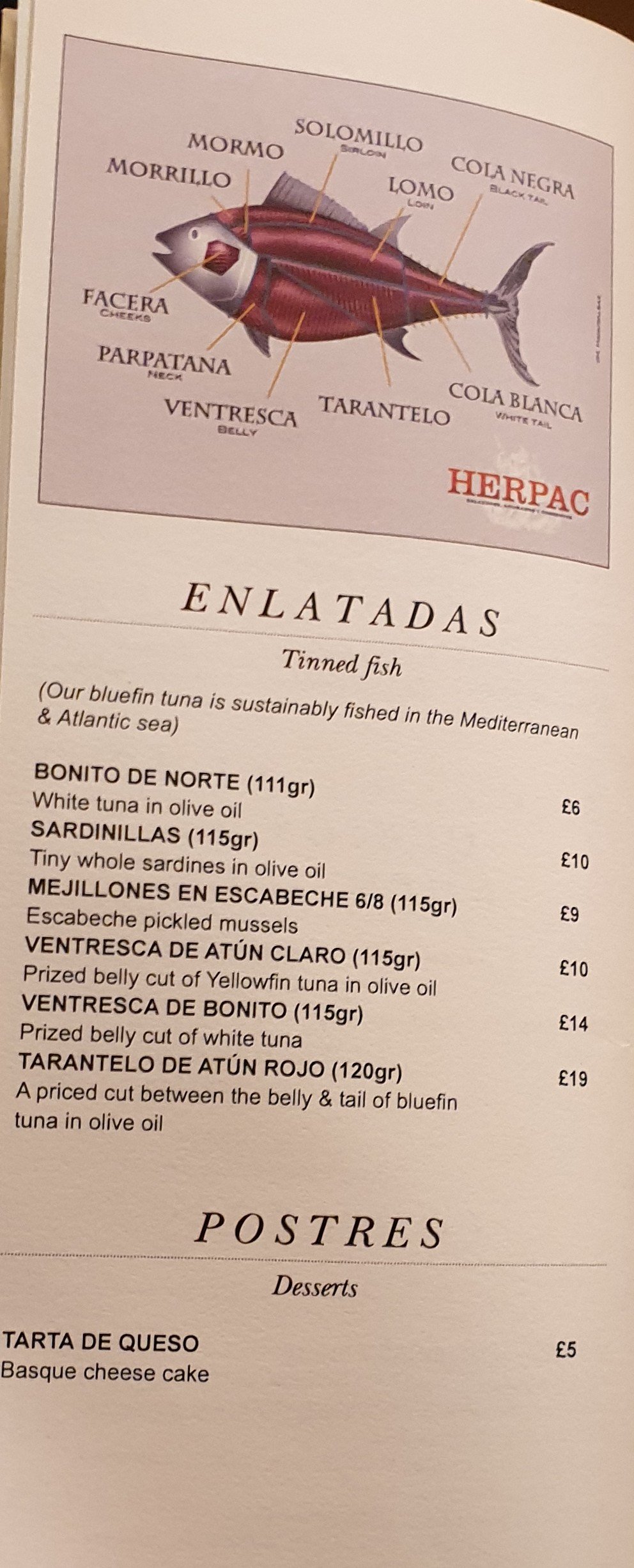 On the fishy front (despite some “How much for a tin of tuna?!” skepticism from J) we went for the ventresca de bonita (white tuna belly).