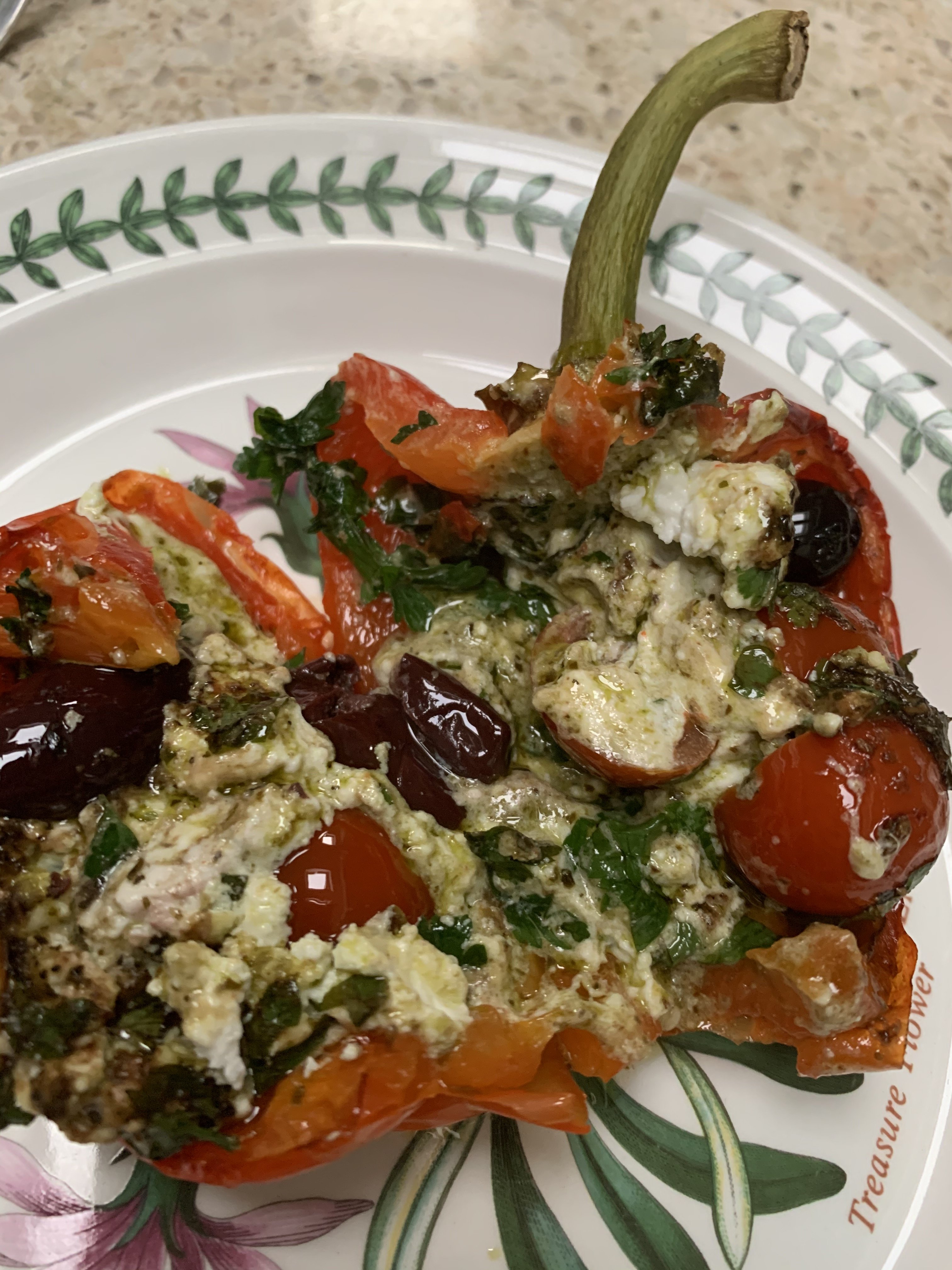 I chose the stuffed pepper to start followed by the chicken and bacon  pie (not a pie, but…), with green beans.