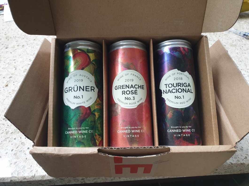 I have seen an increasing number adverts for canned wine and thought lets give it a go. This resulted in me buying a 3 can pack from “The Canned Wine Co.”.