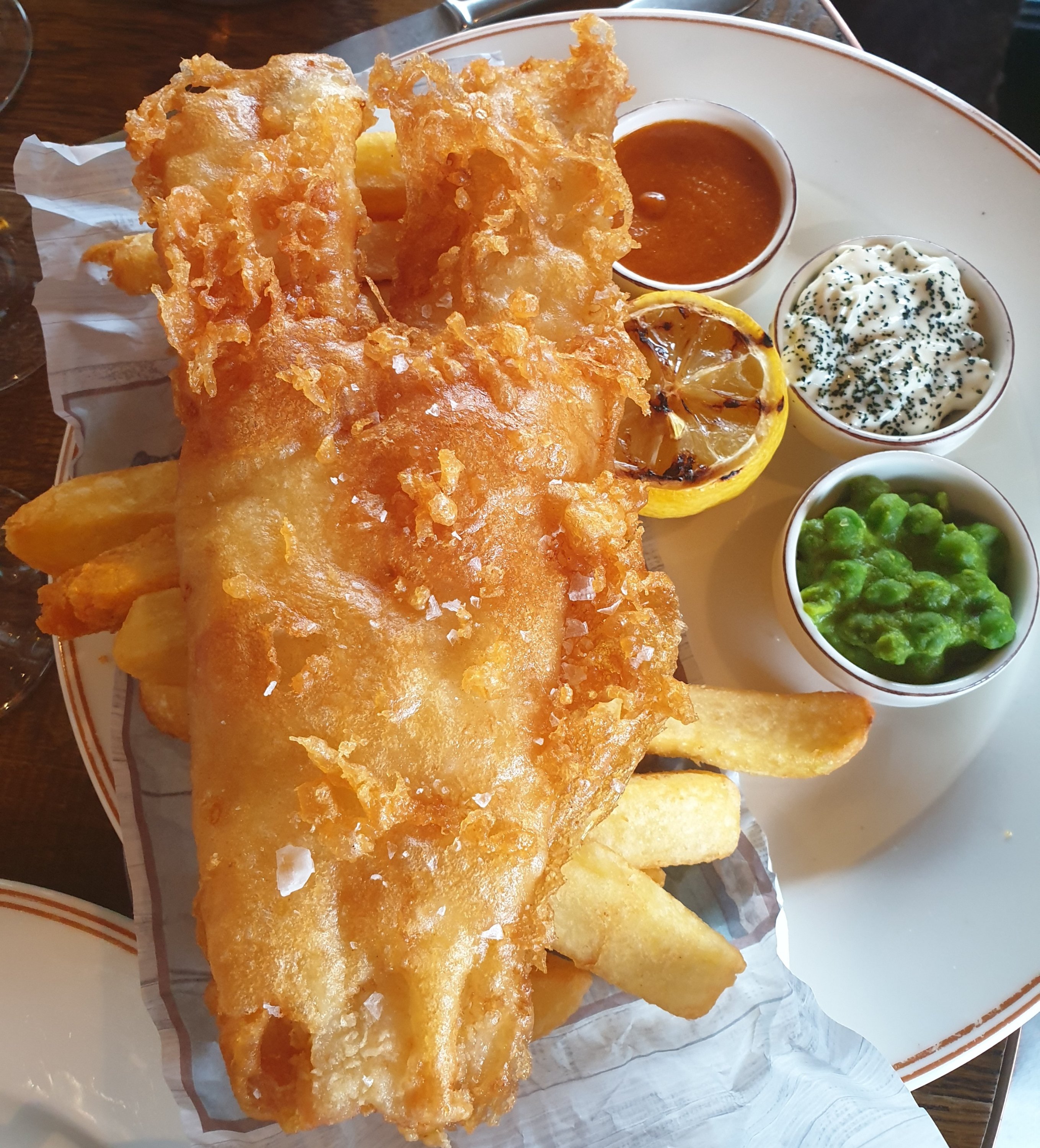 Mrs. SF’s fish and chips (£17) was also of megladon proportions (be warned portion sizes here are on the large size)