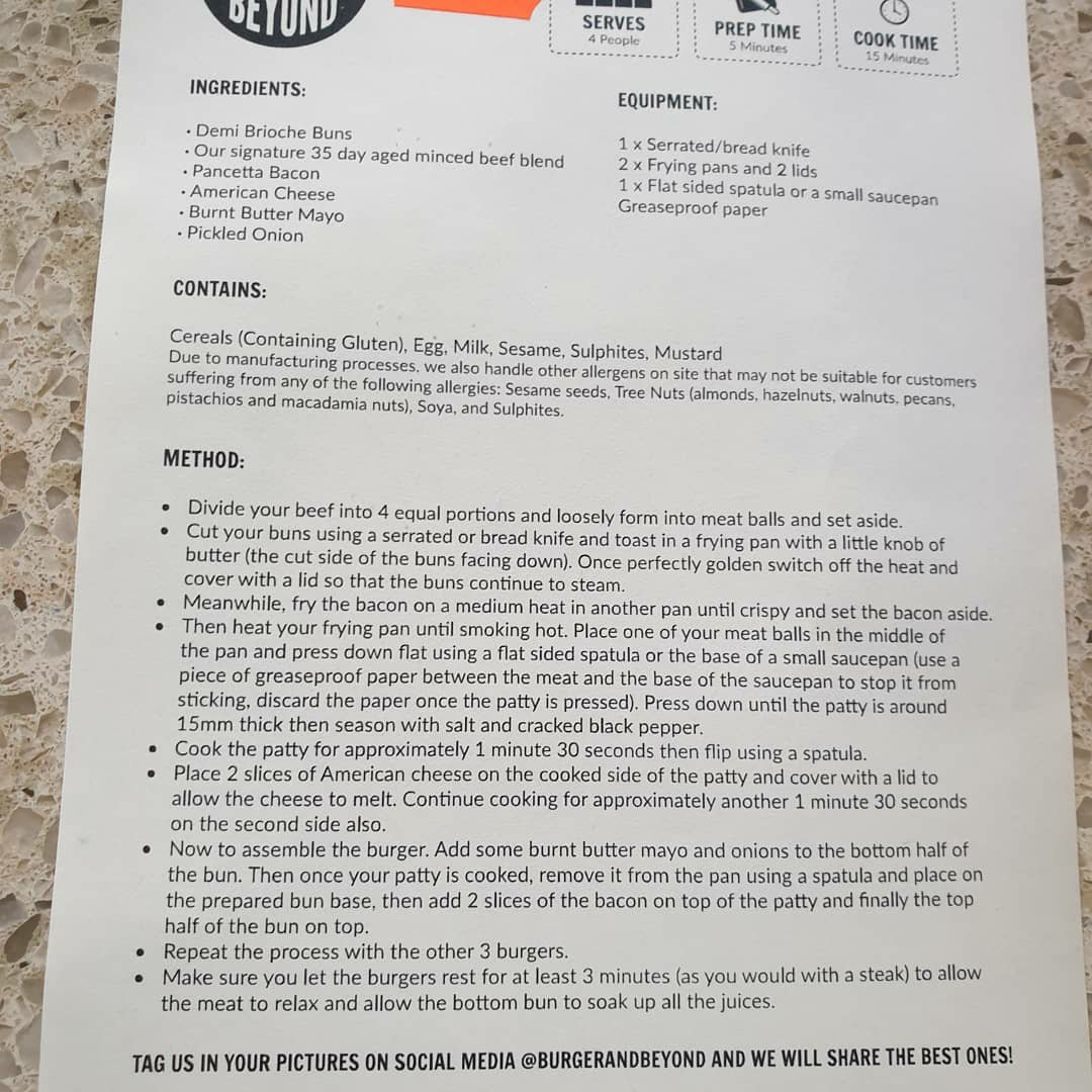 Big old box which contained two double butter bacon burger kits (enough for 4, with J taking the second one and the below picture being my split of the burger kit).