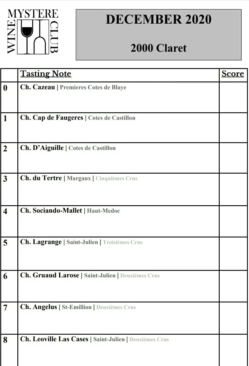 Another class tasting by the Mystere Wine Club, with one plus of 2020 being tasting these wines on their 20th anniversary. Class act the 2000 clarets.
