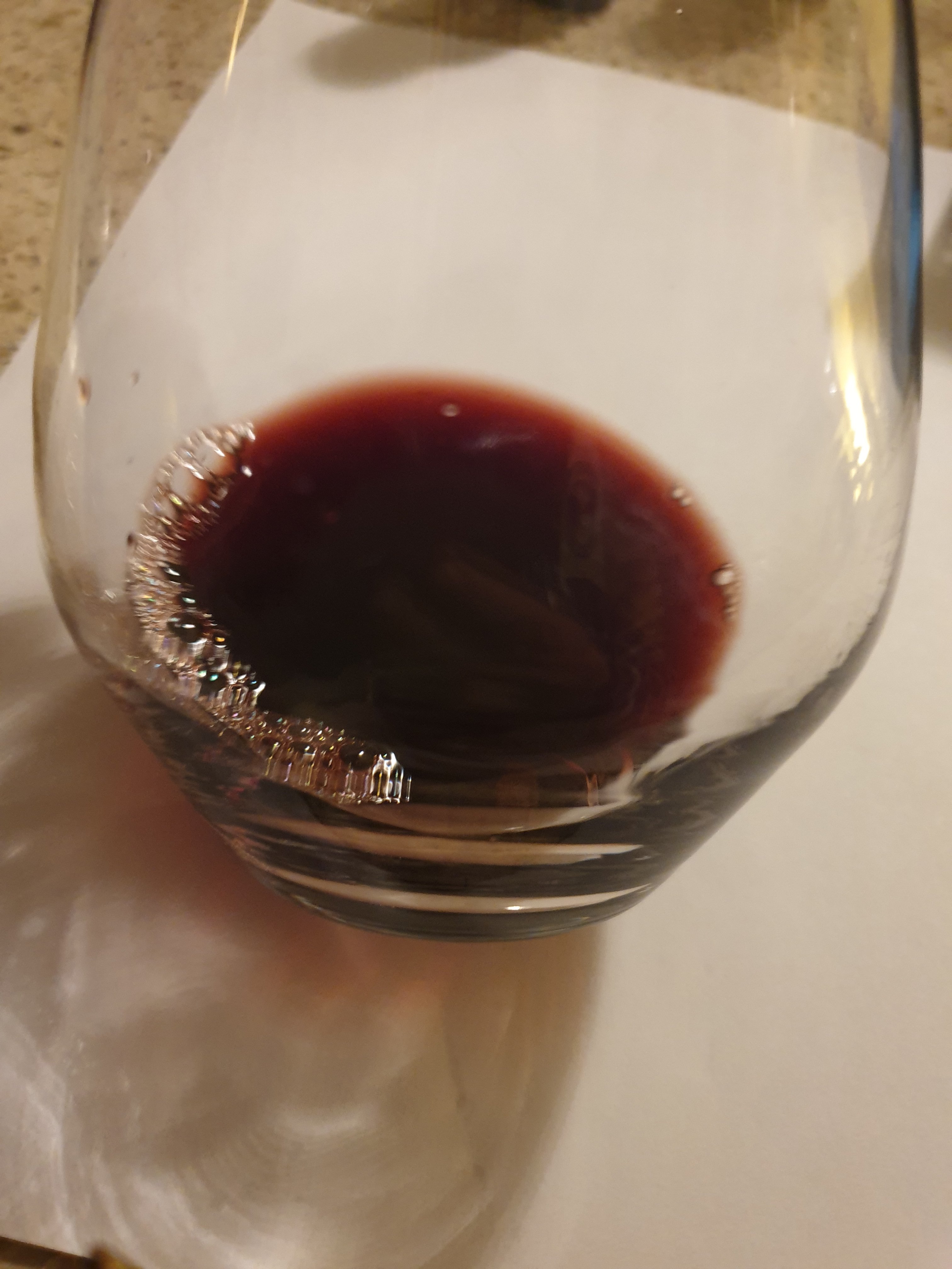 It felt a touch young, even green, in the mouth. An initial hit of damson was followed by distinct floral notes and a finish that had more than a touch of asphalt to it. Tannins were still quite grippy.