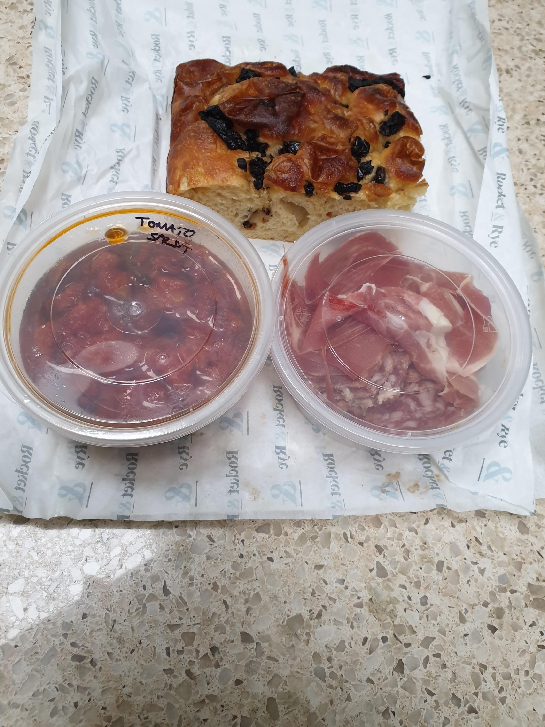 A really punchy black olive forcaccia, with that lovely earthiness black olives bring to the equation really coming through,