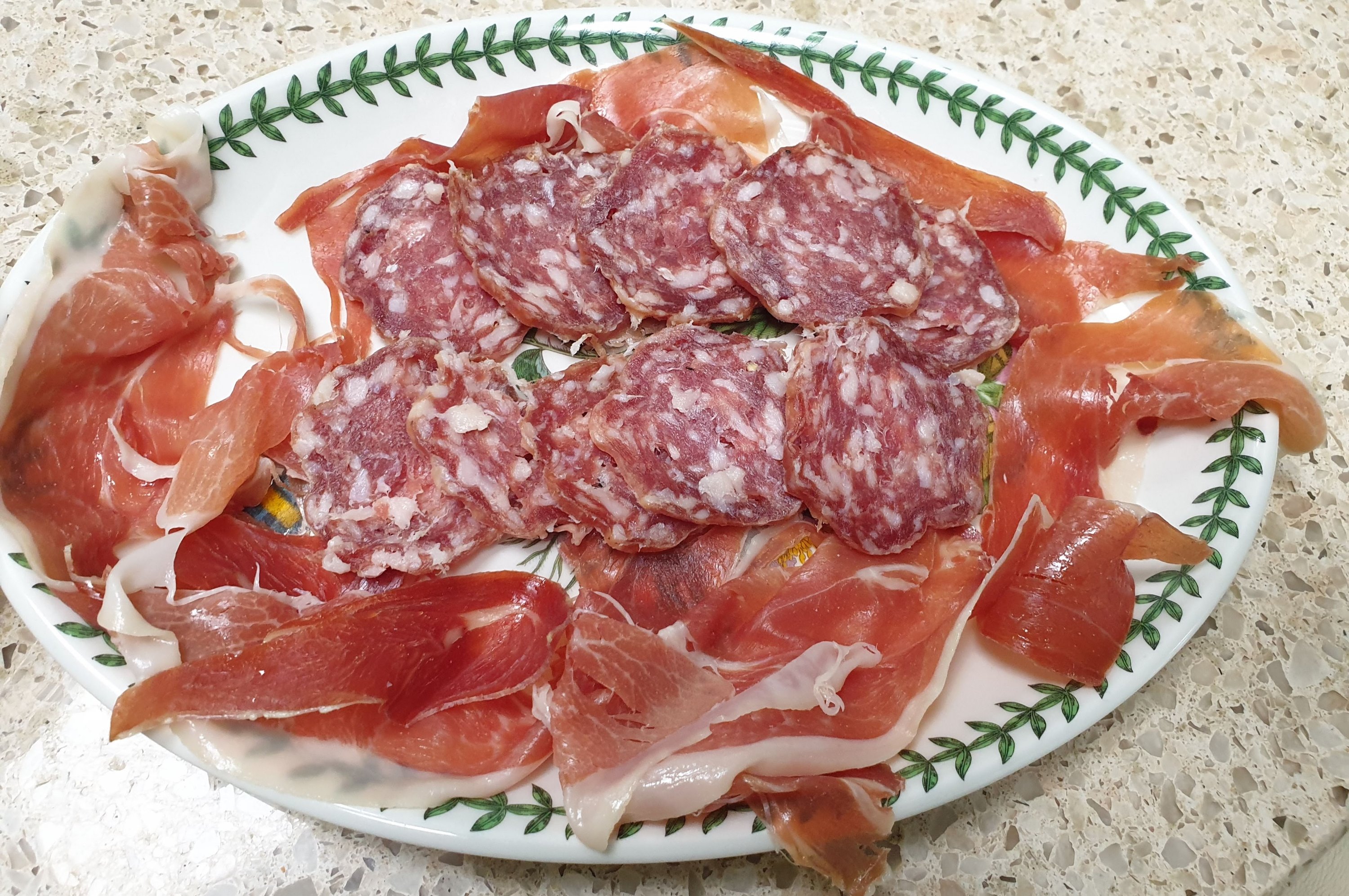 Some cracking charcuterie/salumi (Palma ham, at a guess, and some lovely fatty, cut thick, napoli style salami)