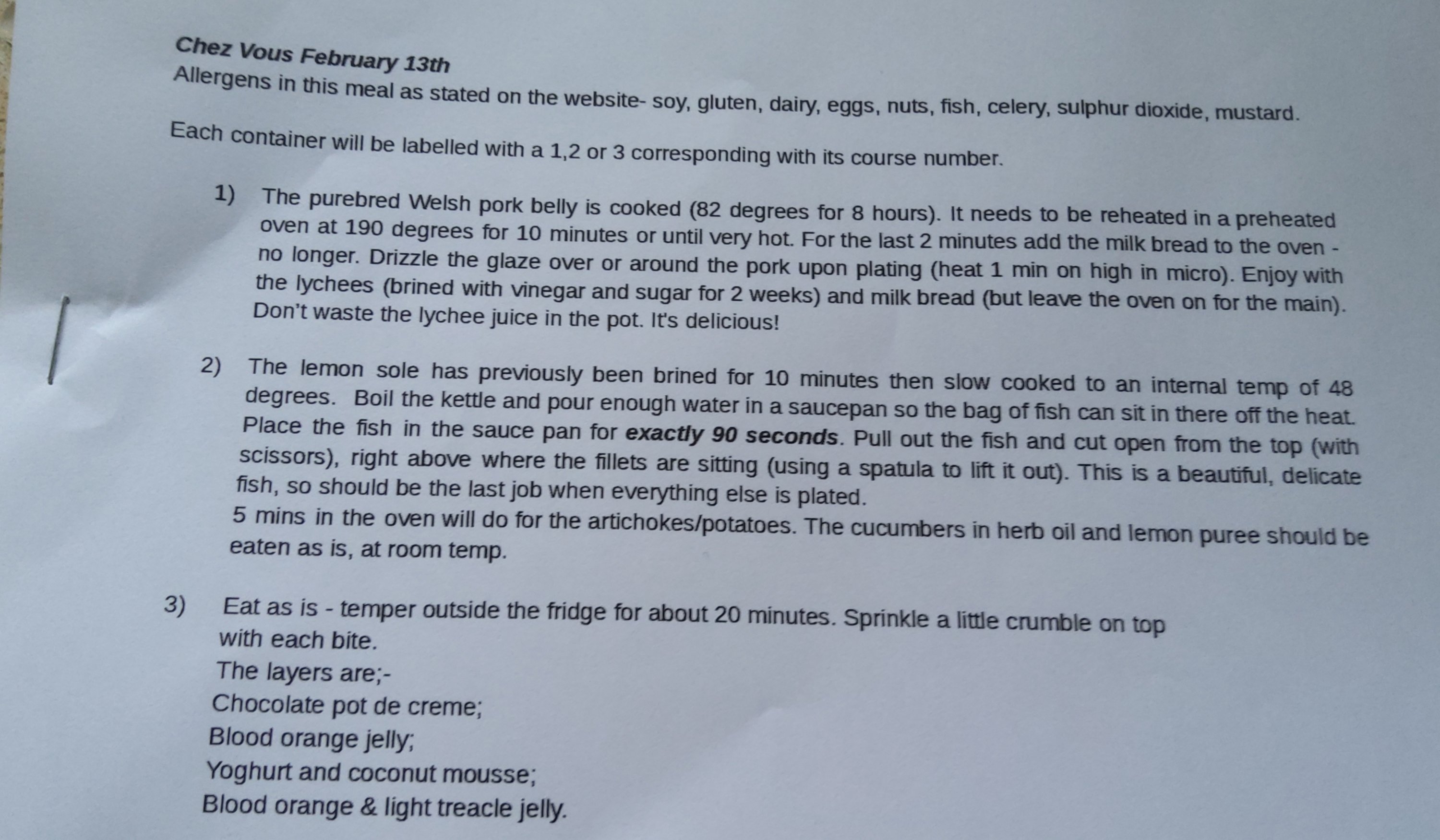 After a bit of deliberation as to what to have on the weekend in question, I went with the three course offering from Grady Atkins at Chez Vous. I absolutely love this man’s cooking, which has never failed to please in the past. This is a guy who DM’s me on a Friday and say “Made too much duck liver pate and I am in your neck of the woods tomorrow  – do you want some?”  and then (refusing to accept payment) leaves the following on my door step.