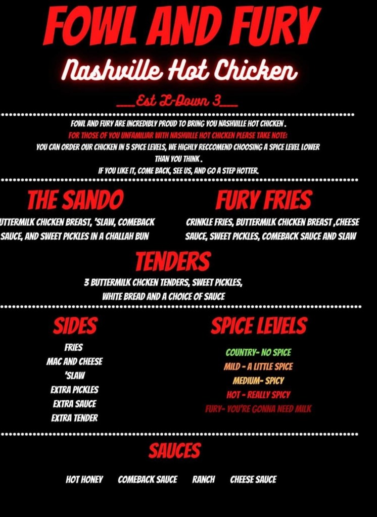 I love a good bit of fried chicken (loathe a bad one) and from what I have heard (from the ever reliable source that is Gourmet Gorro) Fowl and Fury’s wares are “hot” stuff (I didn’t take that quite as literally as, perhaps, I should have) .