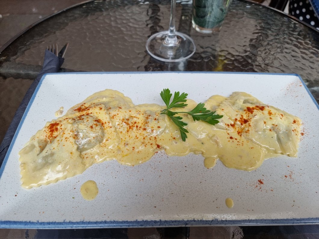 Bit youthful, perhaps, but it worked well enough with the mushroom ravioli. Not cheap at £7.50 a 175ml glass, but I have paid more for a lot less wine wise in bars and restaurants so I was happy enough.