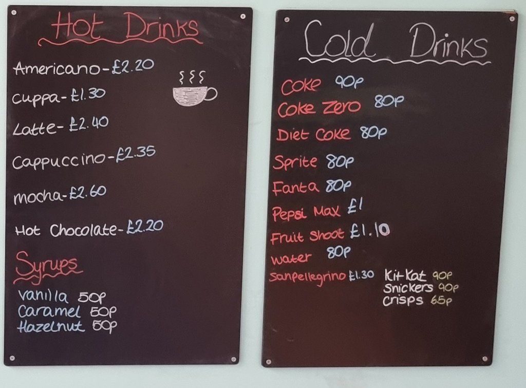 The menu is short and sweet with coffee and soft drinks