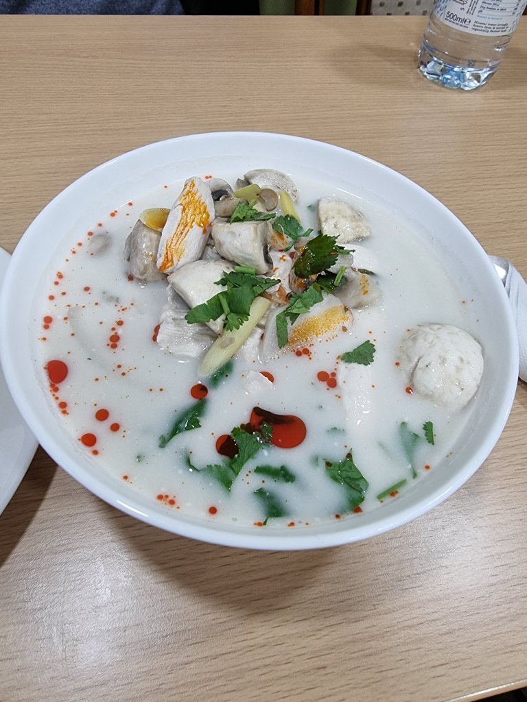 I decided to go for chicken (thus making it tom kha gai) and what I got was a very hearty portion indeed, if slightly insipid looking,