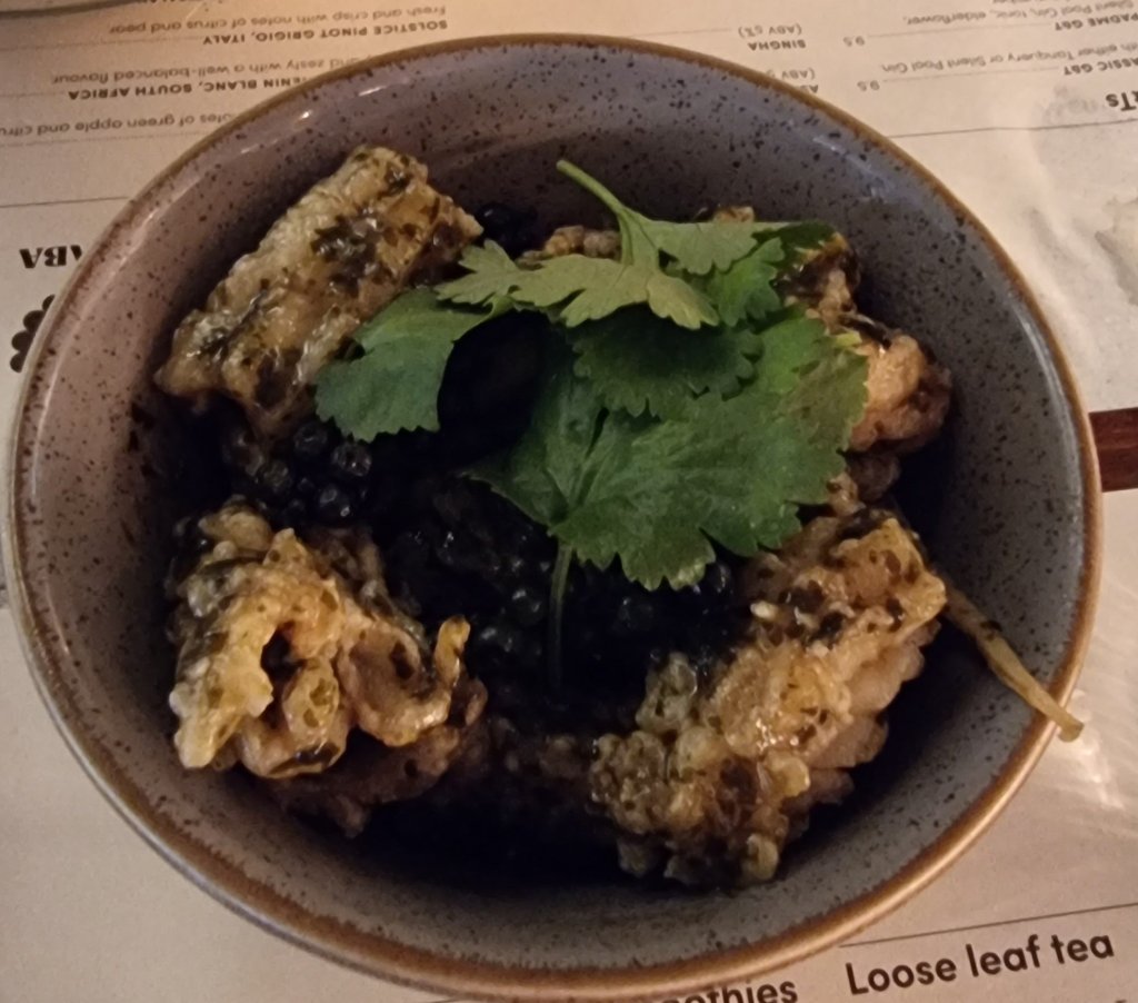 Decent size portion, which was fine to share, with the squid retaining just a bit of bite but not being chewy with a decent light batter. Well cooked I would say.