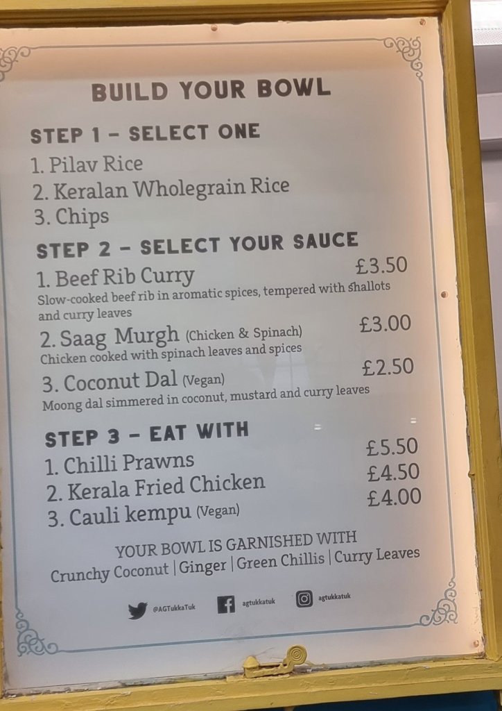 The counter argument to this is the mutton rolls already hit that £5/£6 price point and if you go all veggie with the 3 step bowl it comes in at £6.50.