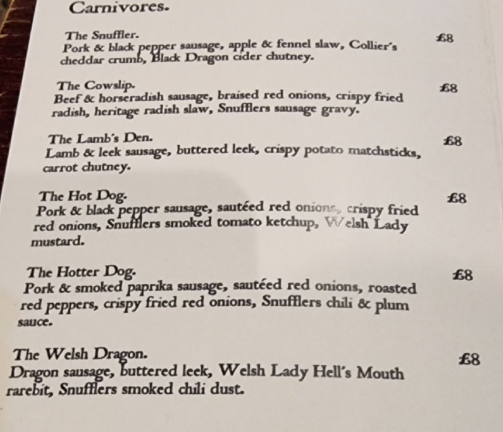 Looking at the menu the first thing that caught my eye was the “the Hot Dog” in the Carnivore section.