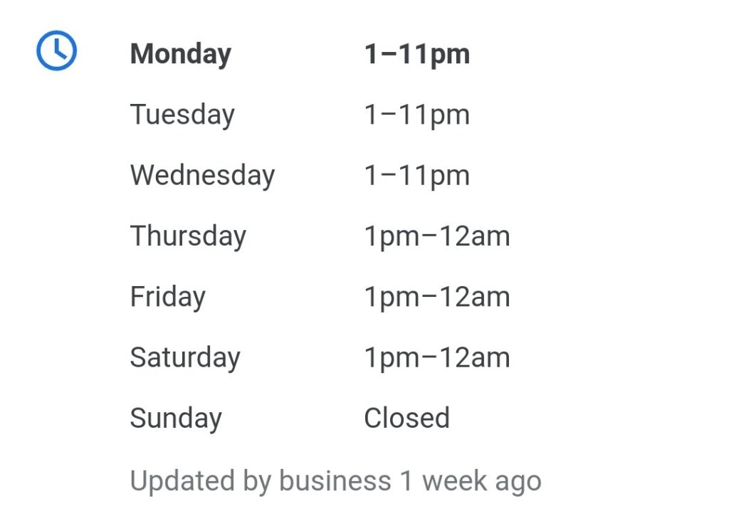 Do find it a bit odd that they don’t open until 13.00 at lunch time.